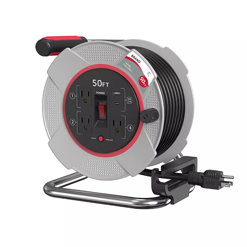 Wielofunkcyjny 3-wyjściowy bęben z plastikowym przewodem USB2.4a o długości 50 stóp z zabezpieczeniem przed przeciążeniem może być używany w scenie, w tym w sypialni, salonie i kuchni.